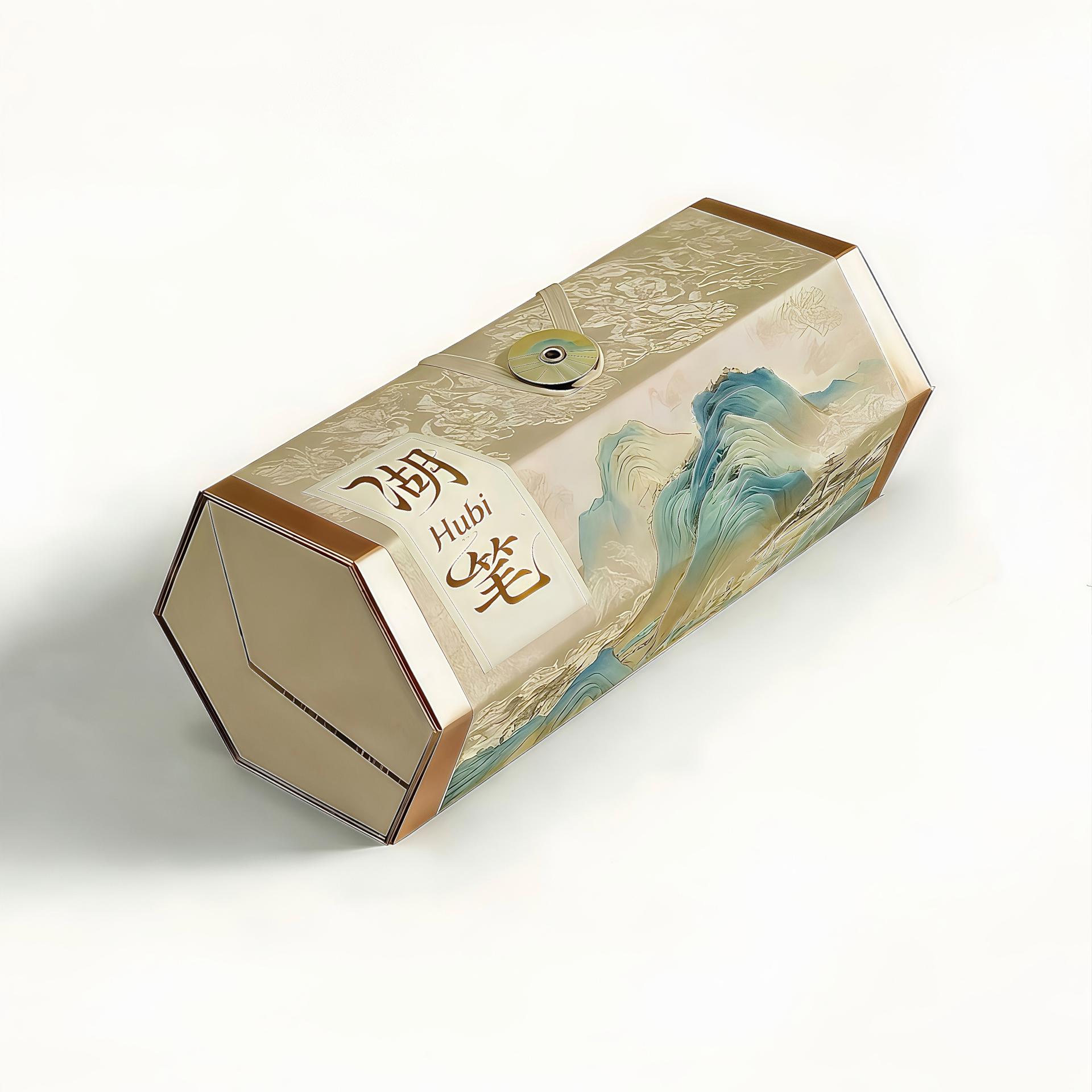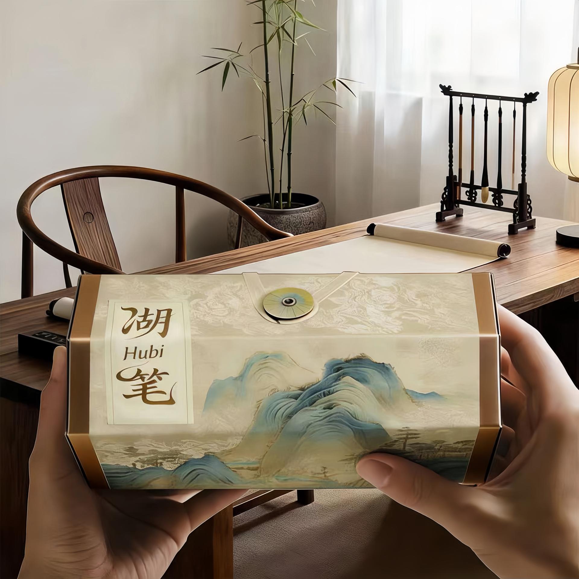 Hu Writing is an innovative functional packaging design for traditional Hu writing brushes, inspired by the Northern Song masterpiece A Thousand Li of Rivers and Mountains and Huzhou silk damask, a precious Chinese intangible cultural heritage. Breaking the disposable packaging model, it adopts the unfolding mechanism of traditional Chinese scrolls. After removing the writing brush, the packaging transforms into a wall-mountable decorative artwork, extending its lifecycle from a one-off container to a long-term cultural carrier. Developed through iterative cultural-functional integration, it features a modular hexagonal form balancing storage safety, transport stability and decorative display, refined via sketching, 3D modeling and material testing. It addresses key challenges by combining traditional craftsmanship with modern manufacturing, achieving scalable production and green consumption. As an exemplary cultural and creative stationery packaging, it elevates the value of Hu writing brushes, provides a replicable sustainable design approach, and contributes to intangible cultural heritage inheritance and low-carbon practices.