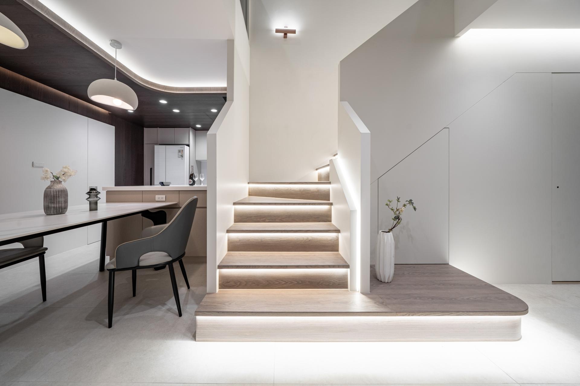 A palette of soft neutral tones paired with warm wood textures enriches spatial depth and hierarchy, shaping a quiet yet fluid living environment.