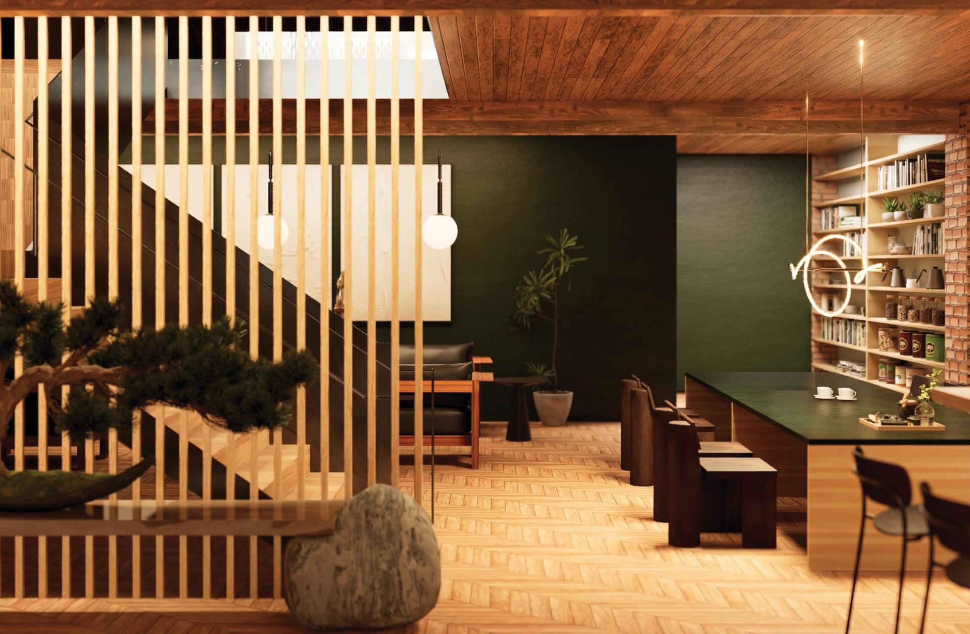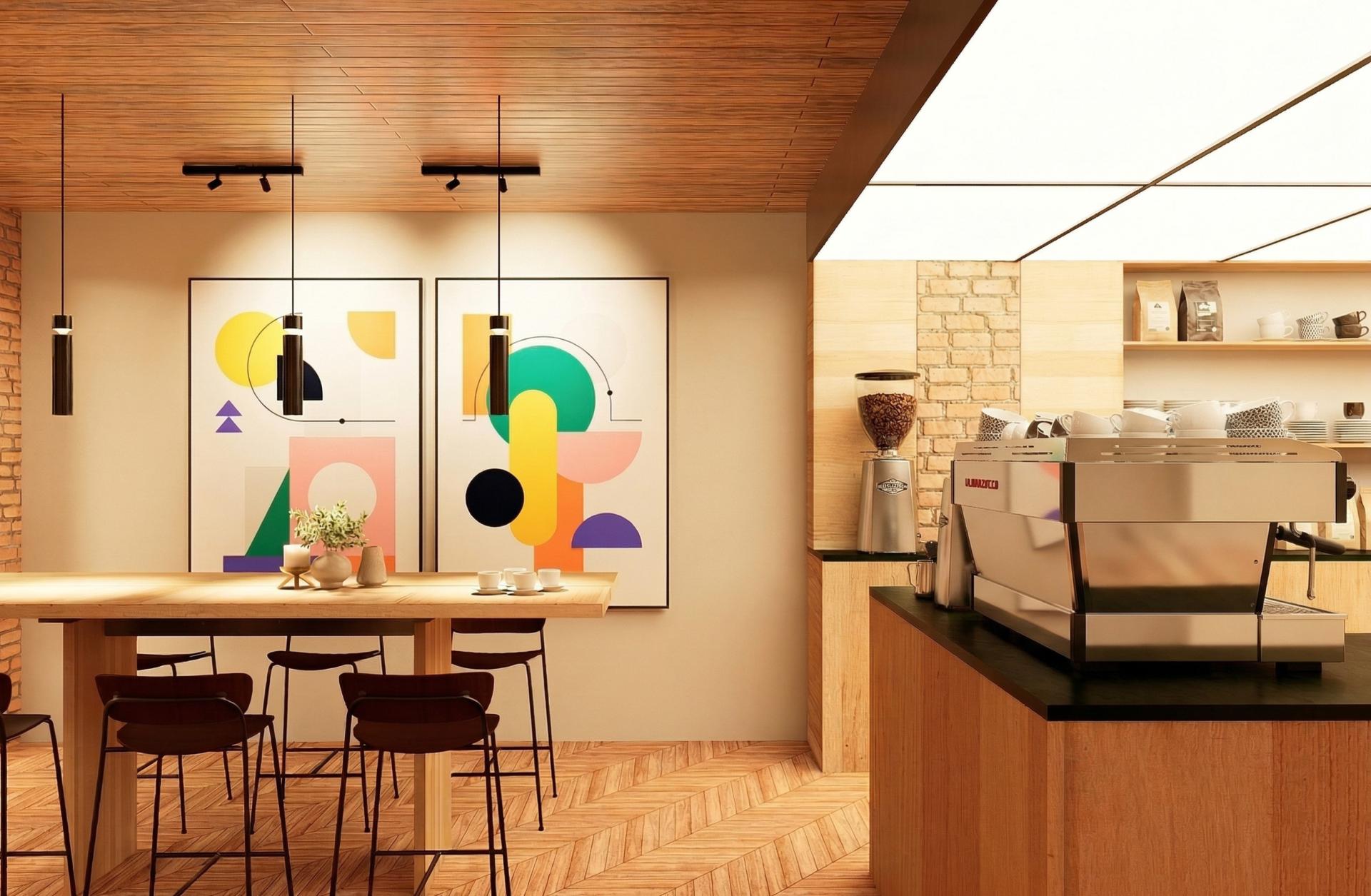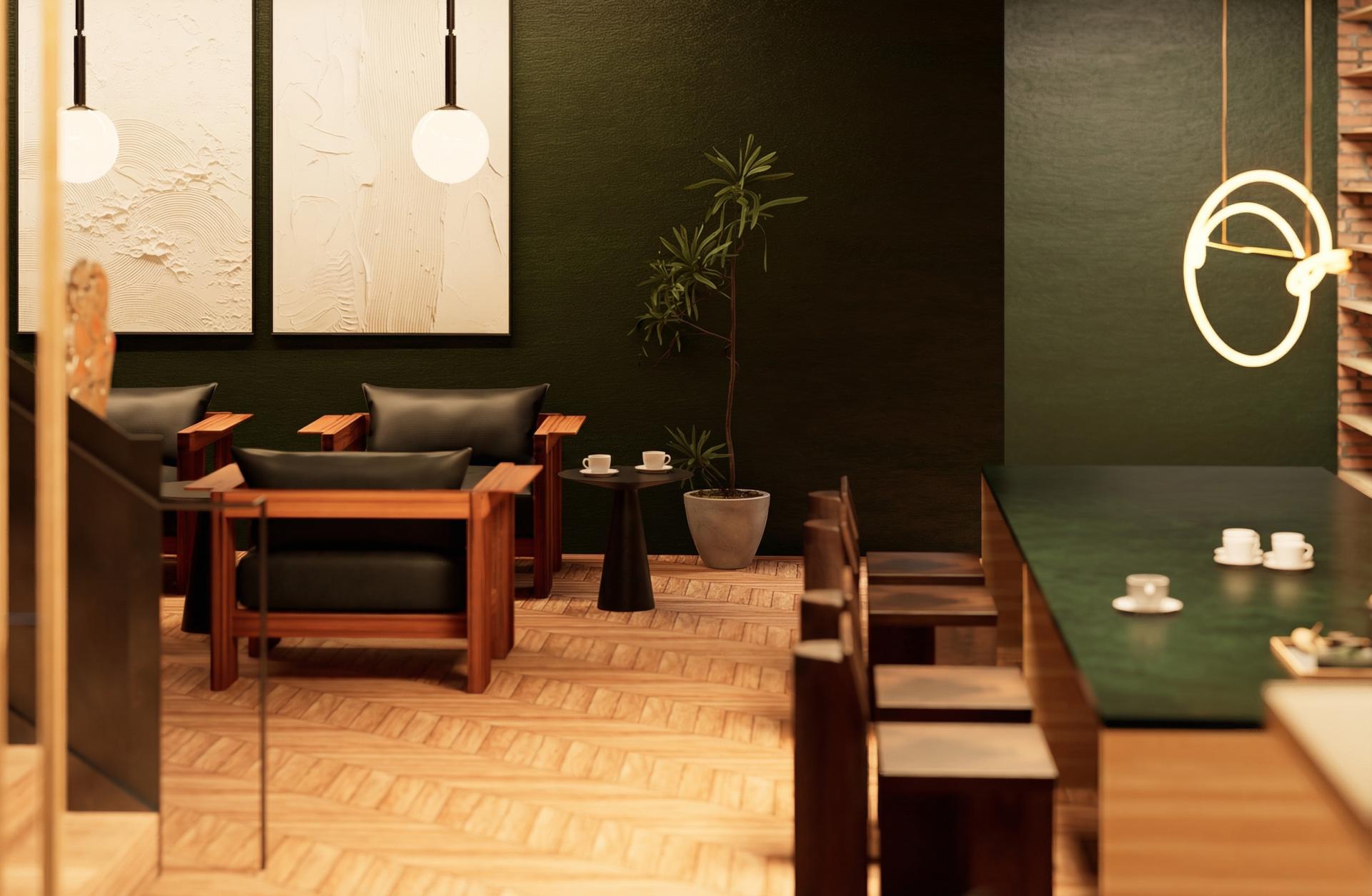 The intervention introduces a warm material palette of wood and stone, newly designed seating, a custom coffee preparation and retail area, and carefully considered lighting to create an inviting neighborhood atmosphere. The resulting space is intended not only for coffee service, but also for reading, informal gathering, working, and lingering. In this way, the project positions the coffee shop as a small but tangible model of community-centered reoccupation: a formerly underused interior transformed into a socially active and welcoming environment.