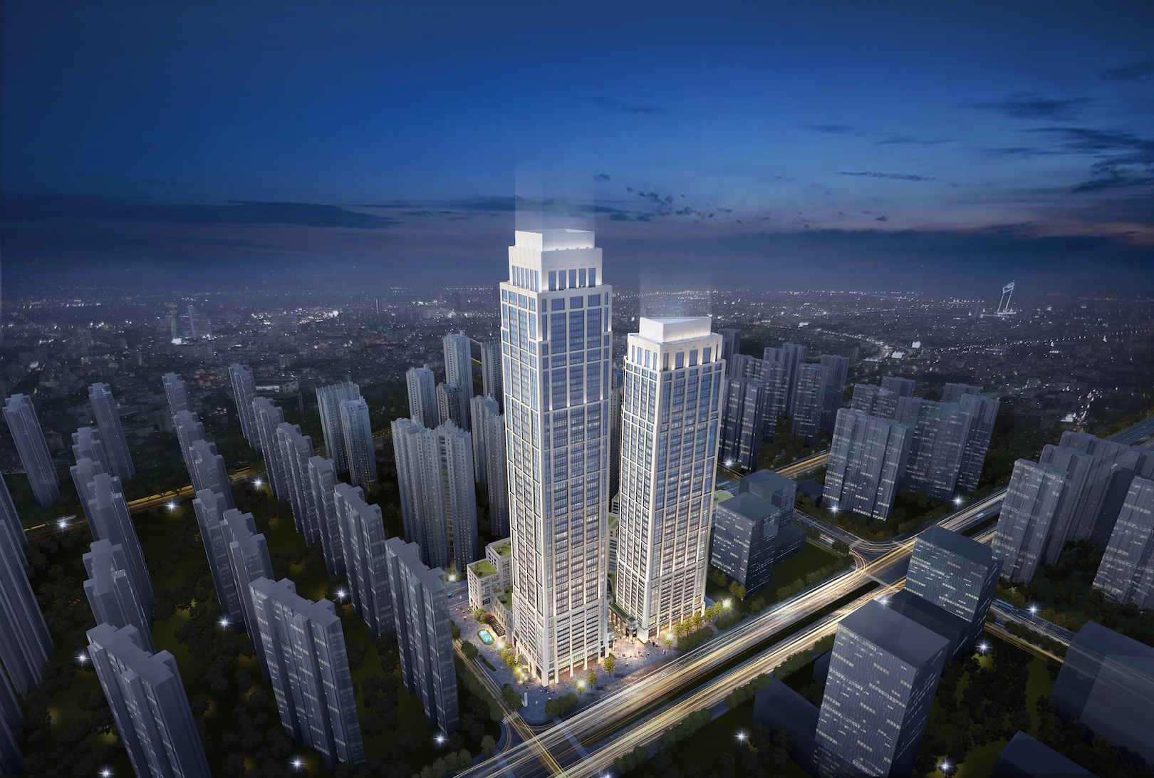 Through the analysis of the commercial value and accessibility, the project has comprehensively arranged five formats, including five-star hotels, office, commerce, catering and apartments. While meeting the living and office needs of citizens near this neighborhood, explore the potential of plots as much as possible, and innovate new vitality and diversity into the new urban area.