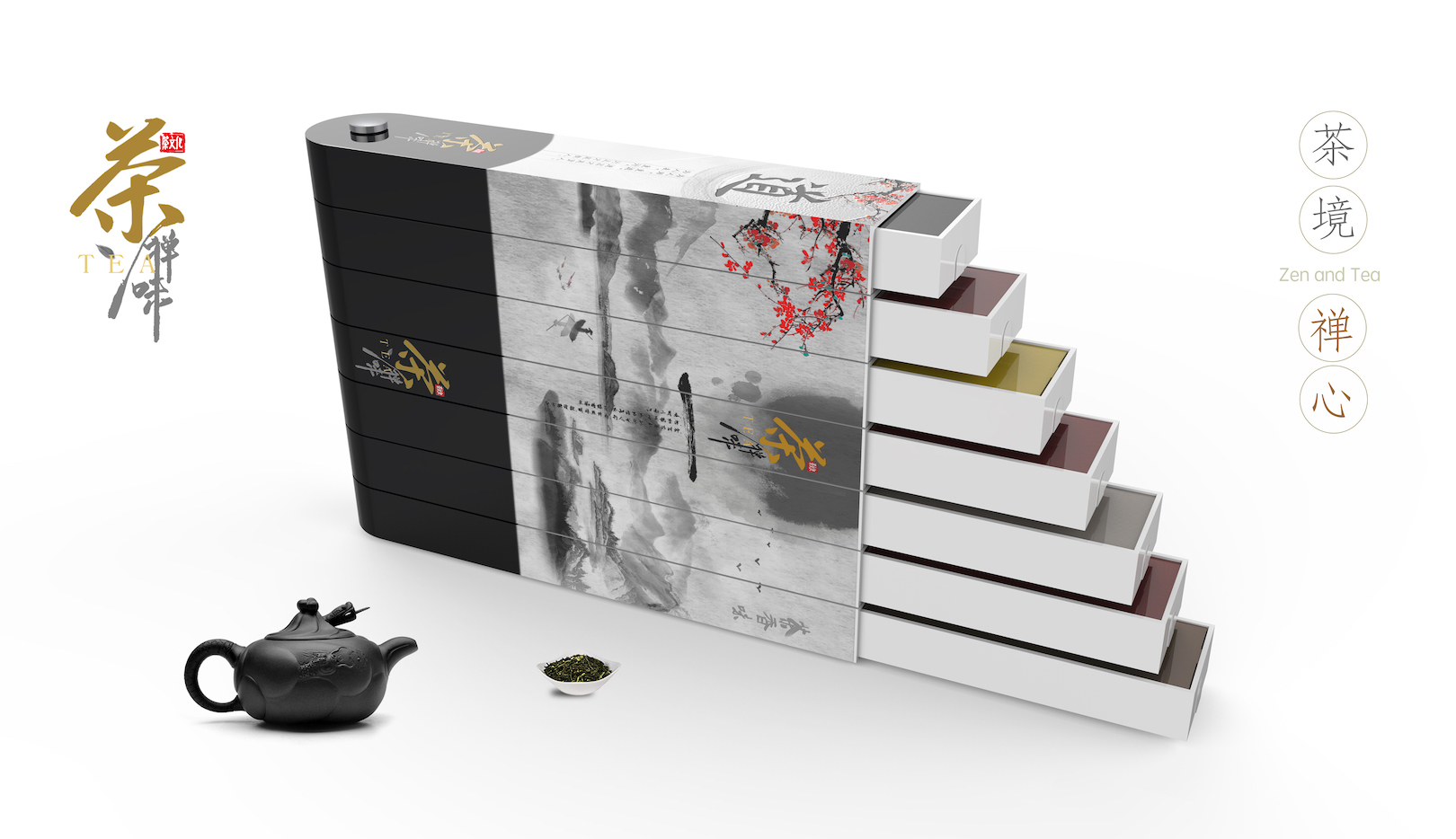 The traditional Chinese folding fan is ingeniously combined with the box design. Integrated with the ancient Chinese tea culture to form a unique and innovative new product design concept.