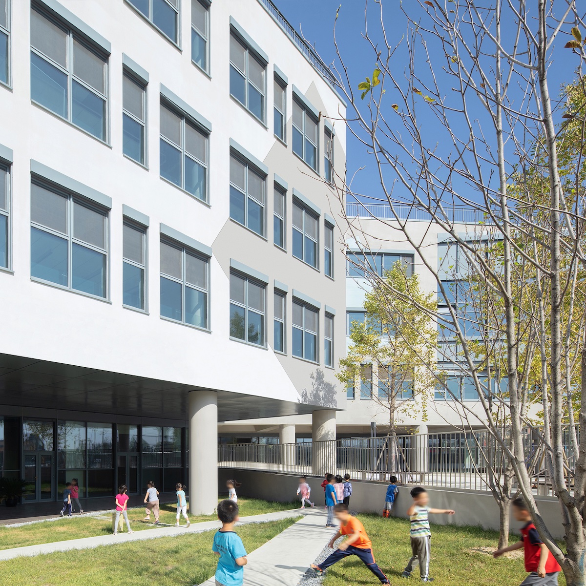 “The Story of Boxes and Courtyards” is a design practice that highly integrates architectural inspiration and educational philosophies, which greatly enhances openness, interactivity and inclusivity of learning spaces. The design team has translated educational concepts into architecture, providing children in public schools with pioneering learning environment towards future of education.