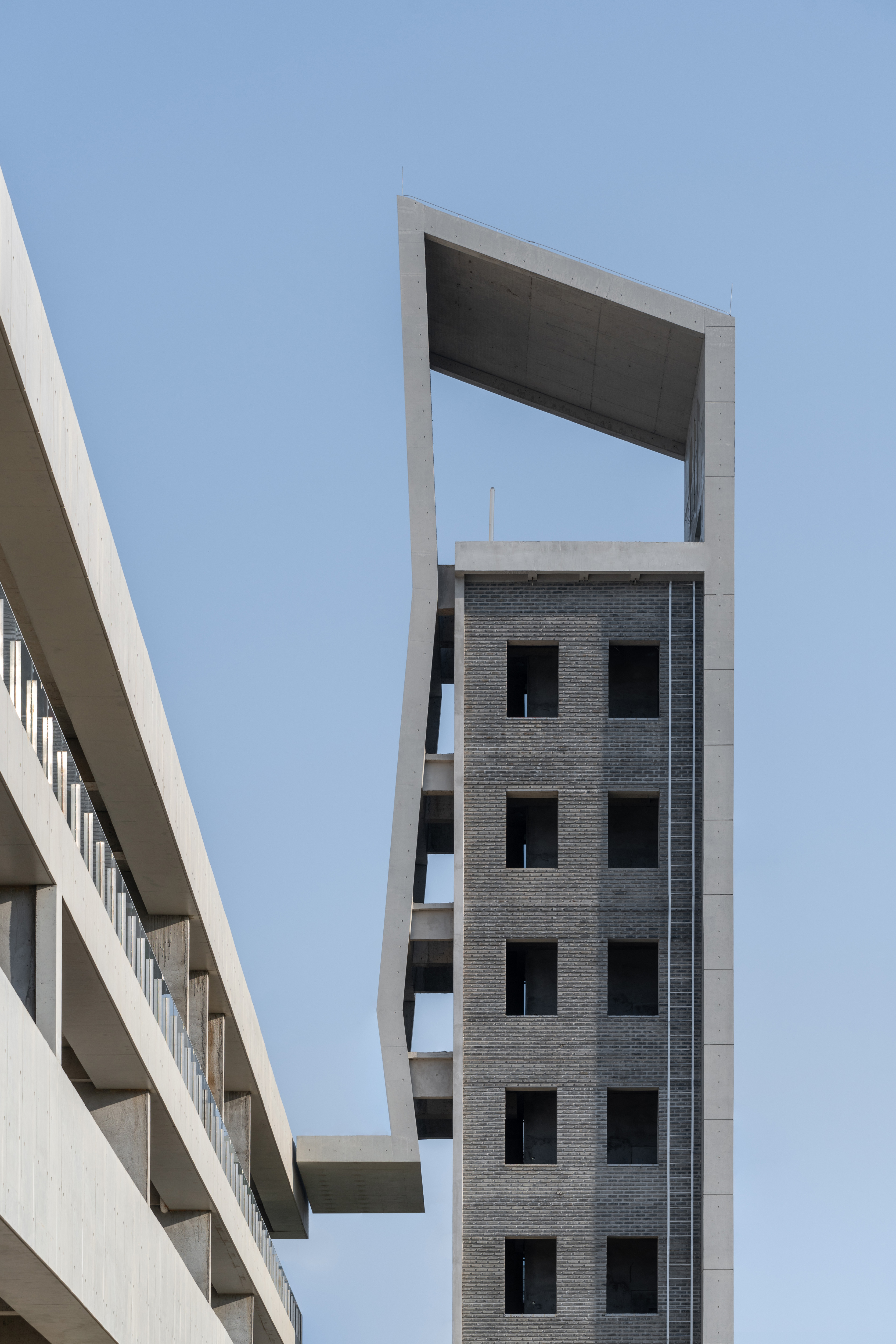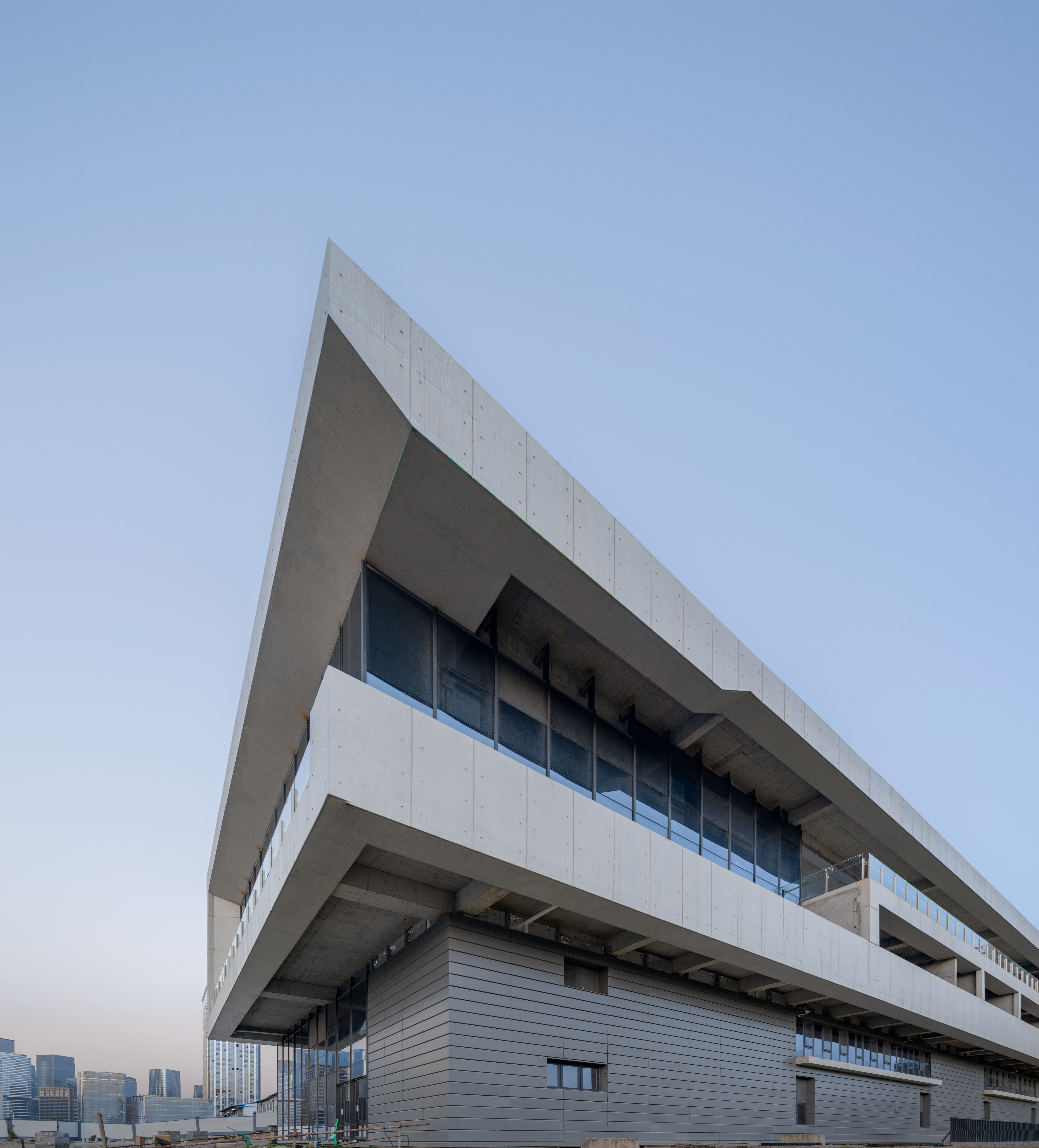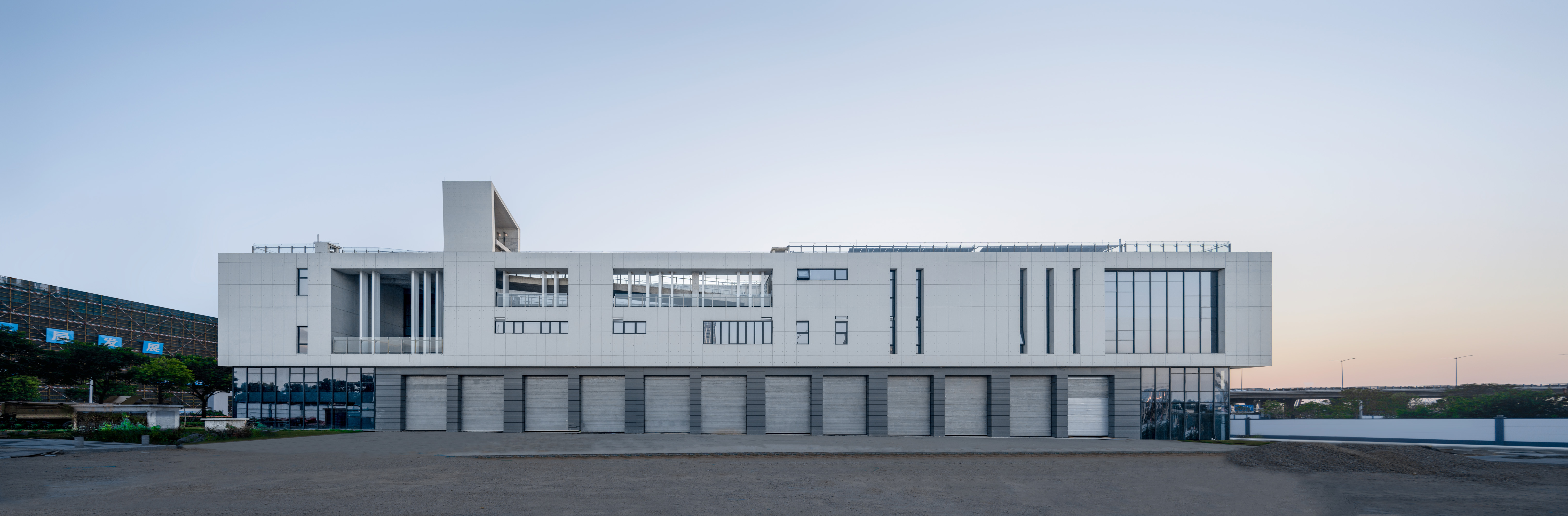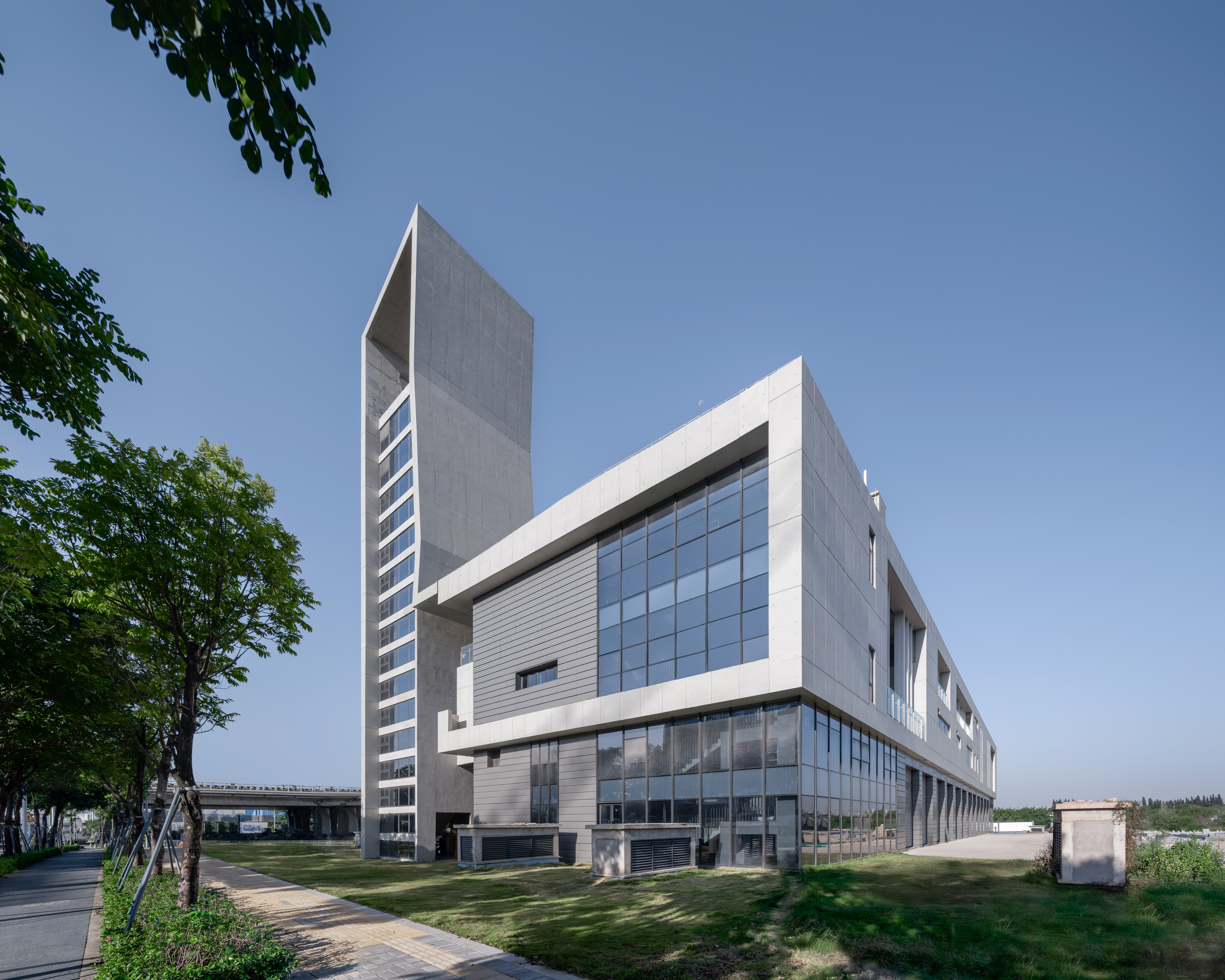 The project is a fire station, situated on Plot 09 and Plot 10 of Block 5, Development Unit 9, Qianwan Area, Qianhai Free Trade Zone, Shenzhen. The site features a rectangular and low-lying shape. The southeast side is higher than the northwest side, with a height difference of about 1.5m. The project occupies a land area of 5,988m² and a gross floor area of 5,600m², with a plot ratio of 0.94. The underground parking lot can accommodate 71 vehicles. Phase I and Phase II constructions of the project are master planned in a unified manner, each of which is functionally independent. Separate entrances and exits for pedestrians and of the basement are respectively set in the two phases, which are independently operated without mutual interference, so that the two phases have complete above-ground and underground spaces.