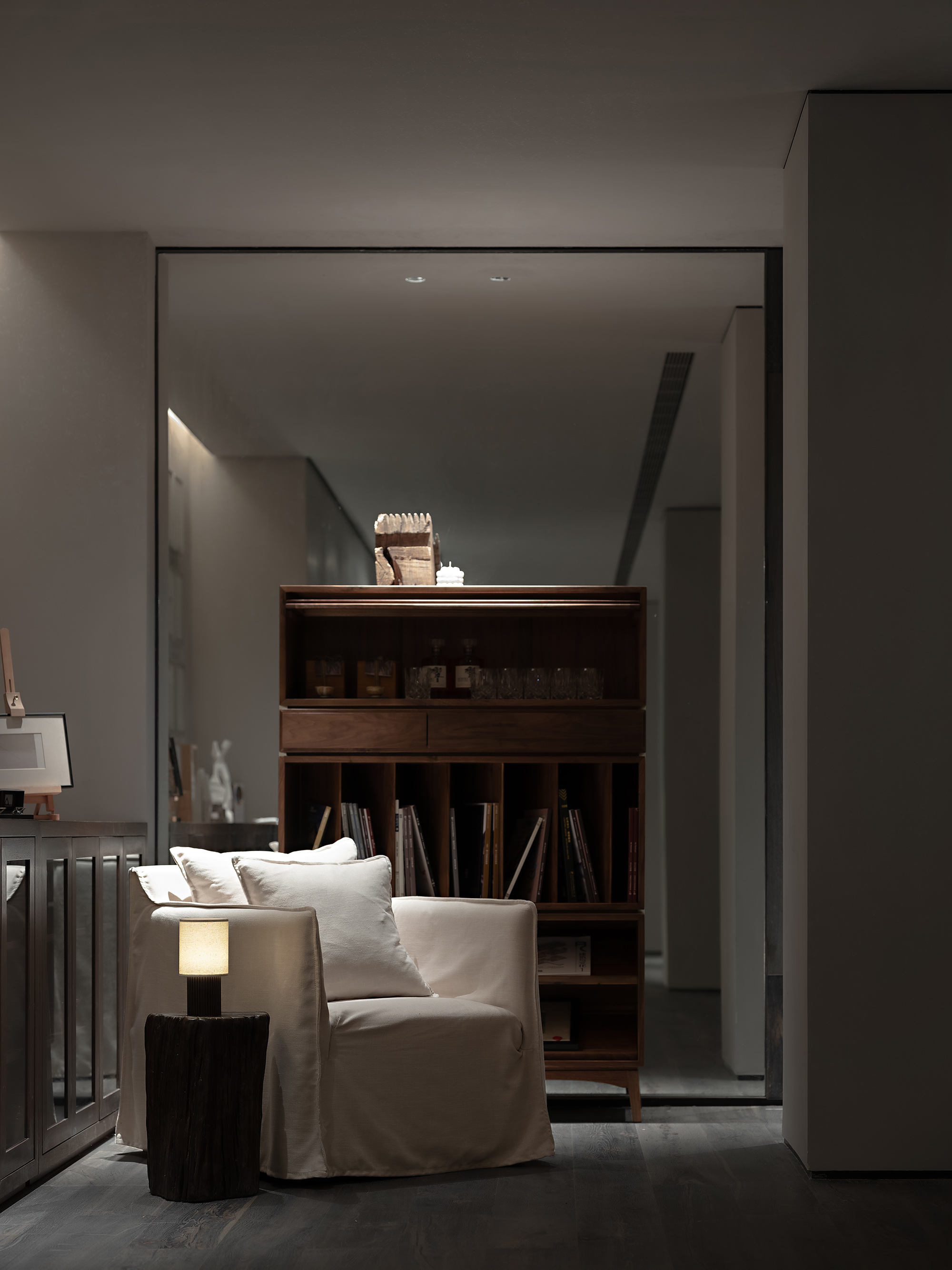 The title of this art gallery space, “Nebula,” symbolizes the infinite prosperity that goes far away and beyond. Just as the essence of literary gathering in history, what matters the most in this design is the casualness, the conciseness, the comfort and serenity generated during the process. Thus, different shades of colors are applied to create a peaceful stillness. Completing the space’s simplicity and conciseness, an environment is born for one to sense the beauty of a downshifting lifestyle in tranquility. The delicate lighting design in the enormous space offers a sufficient glow with spatial fluidity. The basic concepts of contrast, balance, symmetry, proportion, rhythm, and patterns, are applied for diverse arrangements of objects.